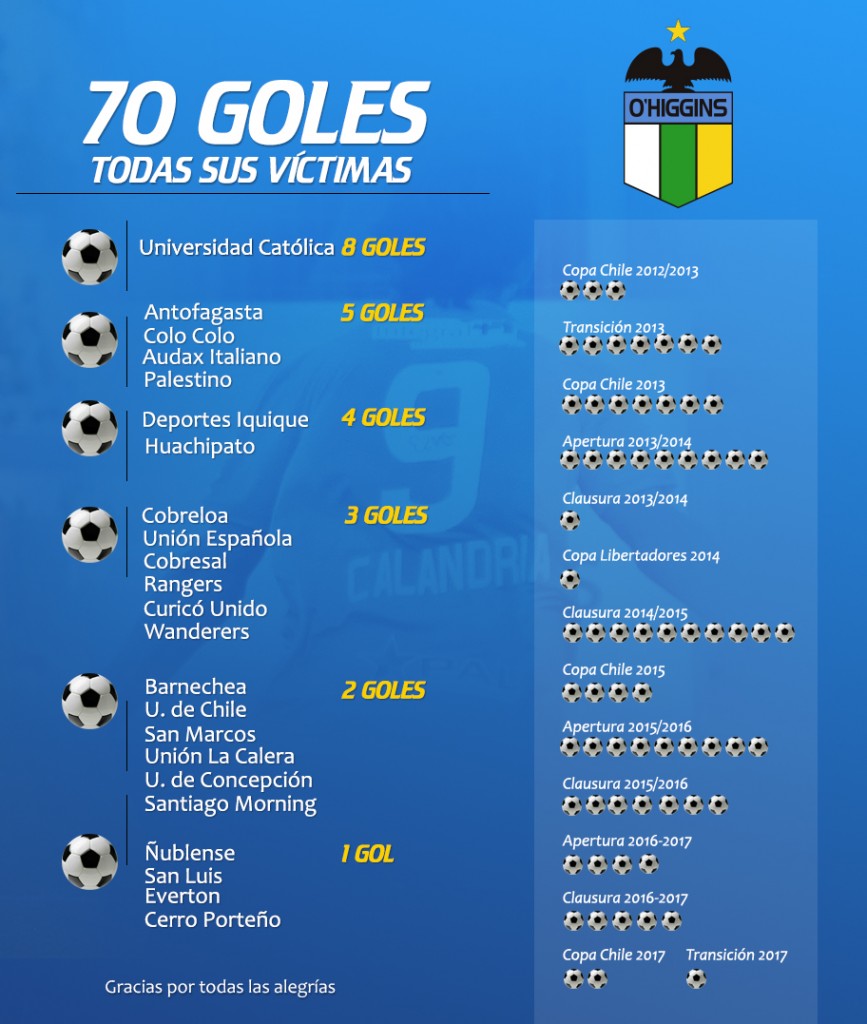 Este domingo en el empate parcial frente a Colo Colo, Pablo Ignacio Calandria alcanzó la friolera de 70 goles defendiendo la camiseta celeste y su campaña sigue marcando un hito en la historia del club.