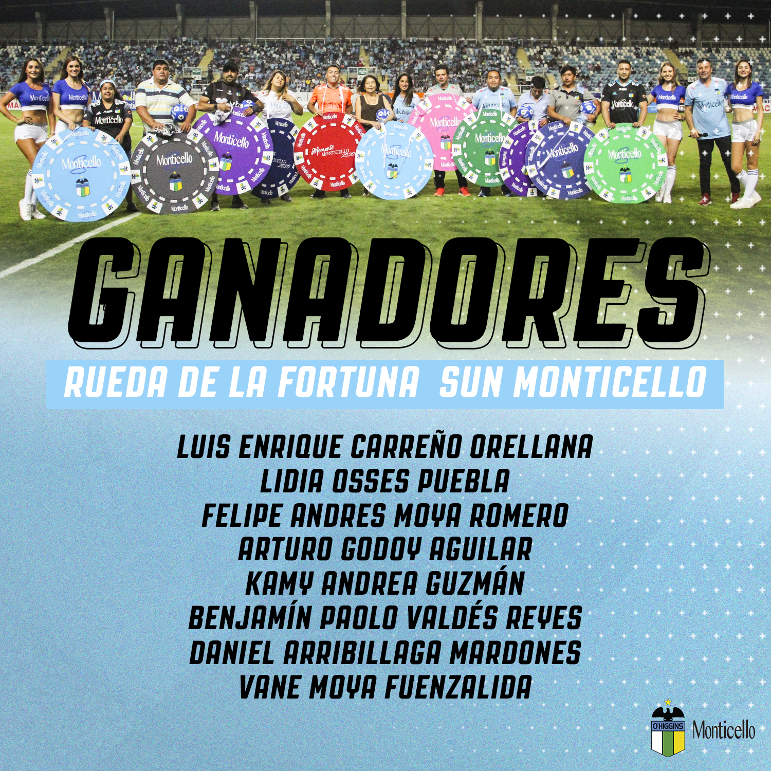 Los afortunados ocho socios deberán enviar cuanto antes su nombre completo, teléfono de contacto al correo contacto@ohigginsfc.cl. Deberán estar a las 17:00 horas de este lunes 10 de febrero en el acceso de calle Almarza. (Cada uno de los ganadores podrá ingresar junto a un acompañante al Estadio El Teniente enviando el respectivo nombre completo y rut del acompañante).