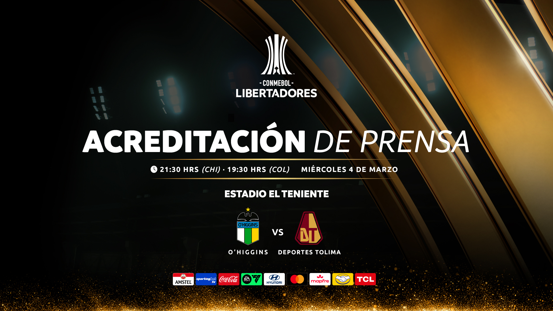 O'Higgins FC informa el inicio del Proceso de Acreditacion de Prensa para el partido entre O'Higgins FC y Club Deportes Tolima, válido por la Fase 3 - partido de Ida de la Copa CONMEBOL Libertadores 2026, programado para el miércoles 4 de marzo, a las 21:30 hrs, en el Estadio CODELCO El Teniente de Rancagua.